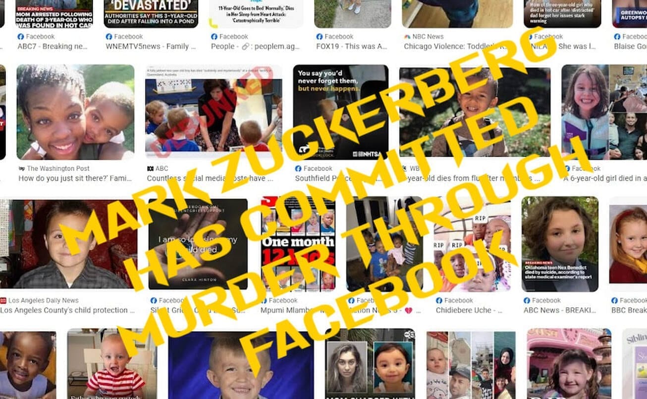 THERE ARE SO MANY PEOPLE INVOLVED, WHICH IS ALL THE SCUM AT THE TOP IN POLITICS, ORGANIZATIONS, THE MOVIE INDUSTRY, THE MUSIC INDUSTRY. SOCIAL PLATFORMS ABUSING AND KILLING CHILDREN. WHAT JUSTIFIES THESE CRIMES AGAINST HUMANITY? ABSOLUTELY NOTHING!! IT'S THE NATION OF AMERICAN PEOPLE TO TAKE ACTION BECAUSE THE FALSE GOVERNMENT DOESN'T CARE AND WILL NOT DO ANYTHING! THEY ARE INVOLVED JUST AS THE OWNER OF FACEBOOK. HUMAN FLESH IS BIG MONEY FOR THEM! IT'S TIME TO OVER THROW THE SCUM AT THE TOP - MARK ZUCKERBERG OWNER OF FACEBOOK IS TO BLAME FOR ALL CHILD MURDERS!